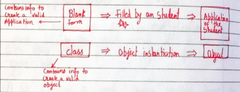 An object is an instantiation of a class. When class is defined, a template(info) is defined. Memory is allocated only after object instantiation.